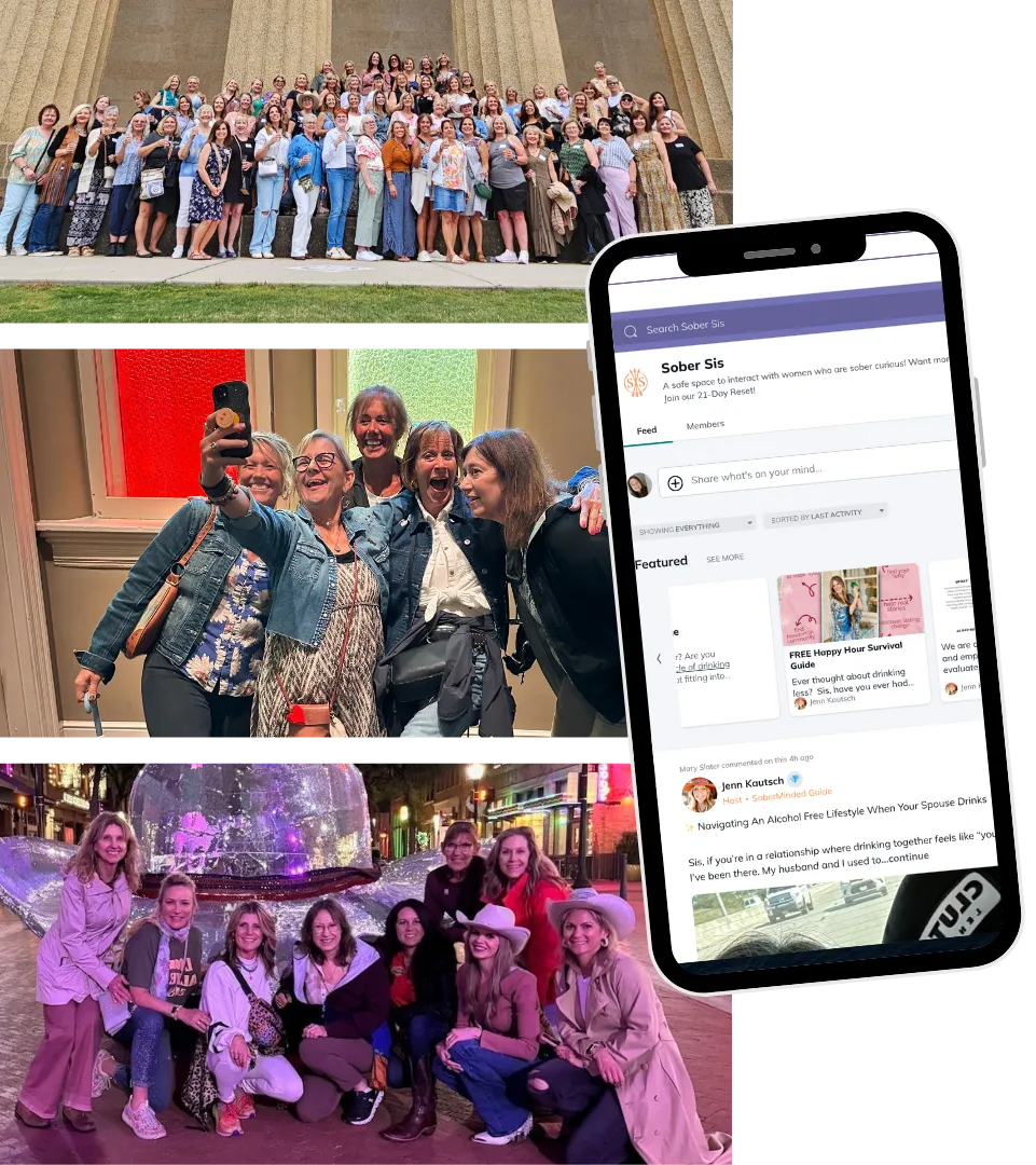 A safe, private space (off social media!) to connect with like-minded women, access to exclusive content from Jenn, and explore alcohol-free living—without judgment or pressure.